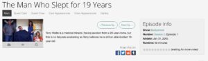 In the previous unit we explored ‘imagined awakenings’ in movies and soap opera. Such scenarios also capture the imagination of news journalists and of media consumers. There are several well-documented examples of unexpected changes in patient’s conditions long after any such change could have been predicted. These cases attract international headlines and circulate repeatedly on social media. Terry Wallis is one particularly famous and well documented case. After being mute and in a minimally conscious state for 19 years he began to be able to talk. His case features in “The Man Who Slept for 19 years”. An update on his condition was presented in 2014 and you can read a moving account from his family here: https://arkansaslife.com/reconnecting-terry/